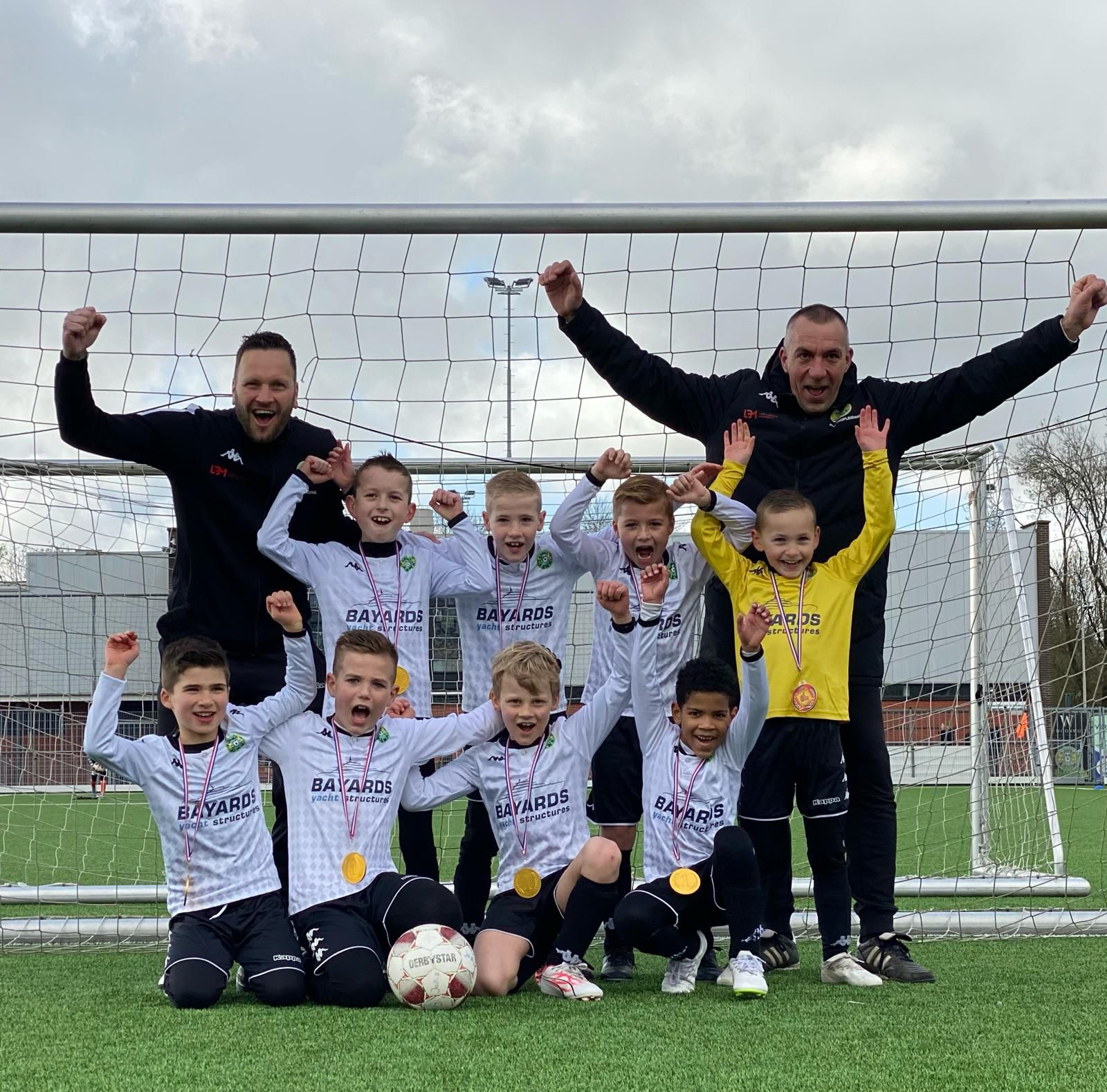 In de 2e helft werd dit mooi recht getrokken door 4 goede goals van Finn (2 maal), Davy en Jim waarna onze jongens de smaak te pakken kregen en na de 4-2 nogmaals 4 goals maakten (waarvan 2 mooie schuivers van Gersom) waarna de teugels wat minder strak aangetrokken werden. Dit leidde wel tot 2 tegengoals, maar een goede overwinning van 8-4 was het resultaat. Wederom een goede prestatie met prima spel, maar zowel de scherpte voor de goal van de tegenstander als voor de eigen goal ontbrak er nog wel eens aan.