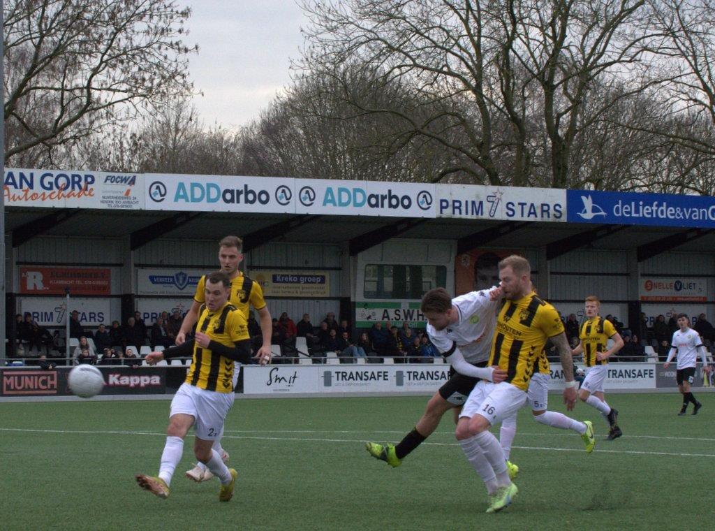 ASWH heeft vanmiddag een punt overgehouden aan de thuiswedstrijd tegen DVS '33 Ermelo. In een onderhoudend en grotendeels evenwichtig duel slaagden beide ploegen er niet in om te scoren. Voor rust raakten de Ambachters en de bezoekers paal en lat, na rust bleven de treffers eveneens uit. In de slotfase drong DVS '33 Ermelo wel meer aan, maar doelman Jomar Gomes voorkwam met enkele goede reddingen dat een strijdend ASWH puntloos zou achterblijven. Een prima teamprestatie leverde dus een resultaat op, terwijl bovendien voor de tweede achtereenvolgende week de nul werd gehouden. Het gelijkspel betekende ook dat ASWH iets inliep op de concurrentie onderin.